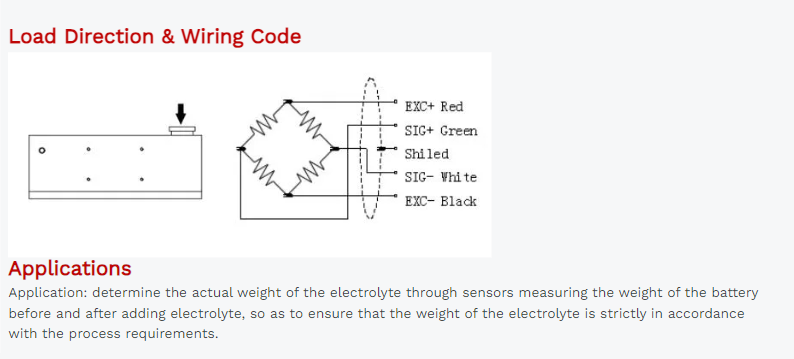 Cable Connection: Ex+: Red;Ex-: Black;Sig+: Green;Sig-: White