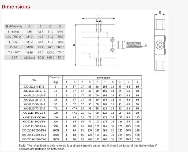 XJCSENSOR XJC-ZL13-150-35-6 Through-hole Type Tension Sensor (150 Kg)