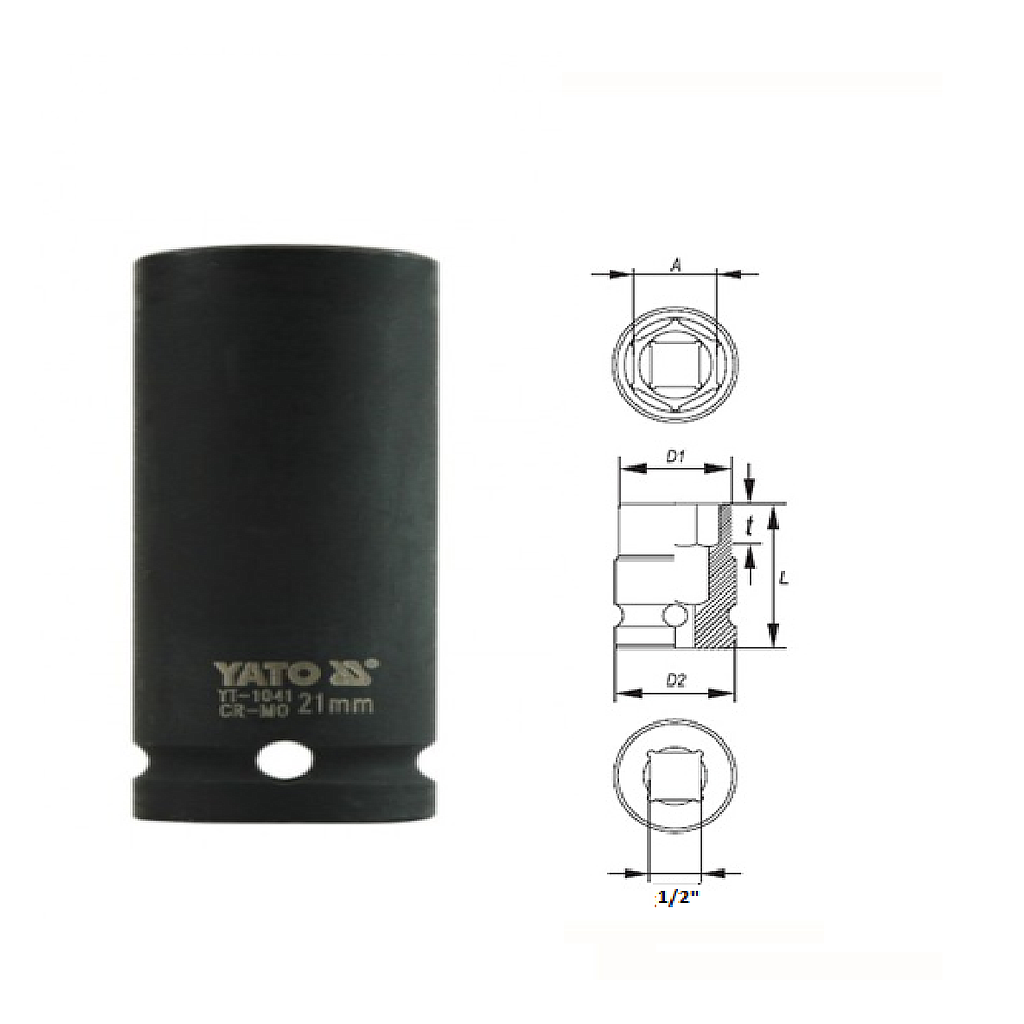 Yato YT-1041 Hexagonal deep impact socket 1/2" (21mm)
